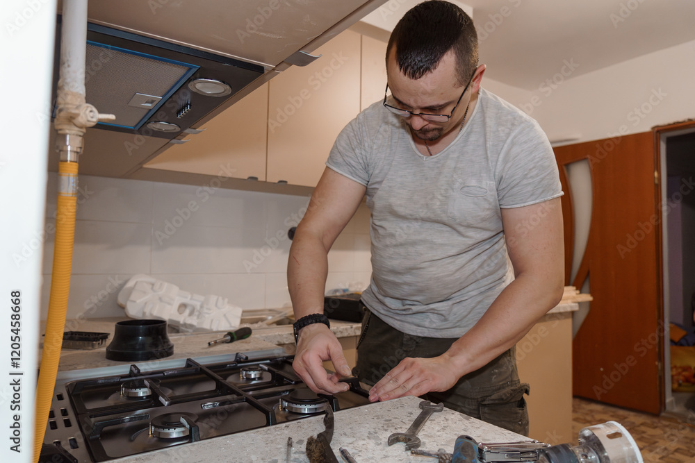 A Skilled Handyman Installing a Gas Stove in a Modern Kitchen