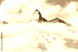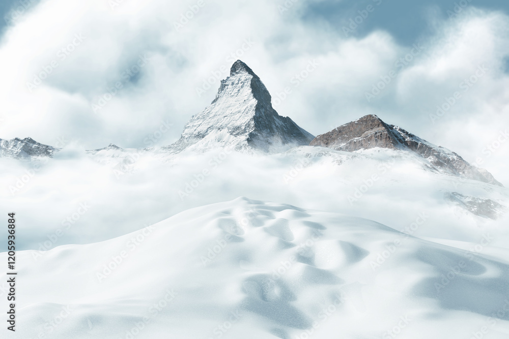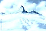 Digital Composition of snow-covered hill with snow tracks in front of the majestic matterhorn mountain