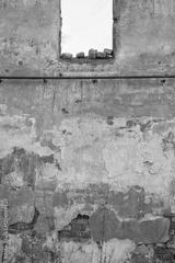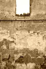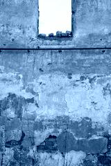 Cracked vintage wall with textured surface with hole from the window