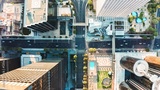 Explore the vibrant streets and modern architecture of downtown Loa Angeles from an aerial perspective, showcasing city life and urban design
