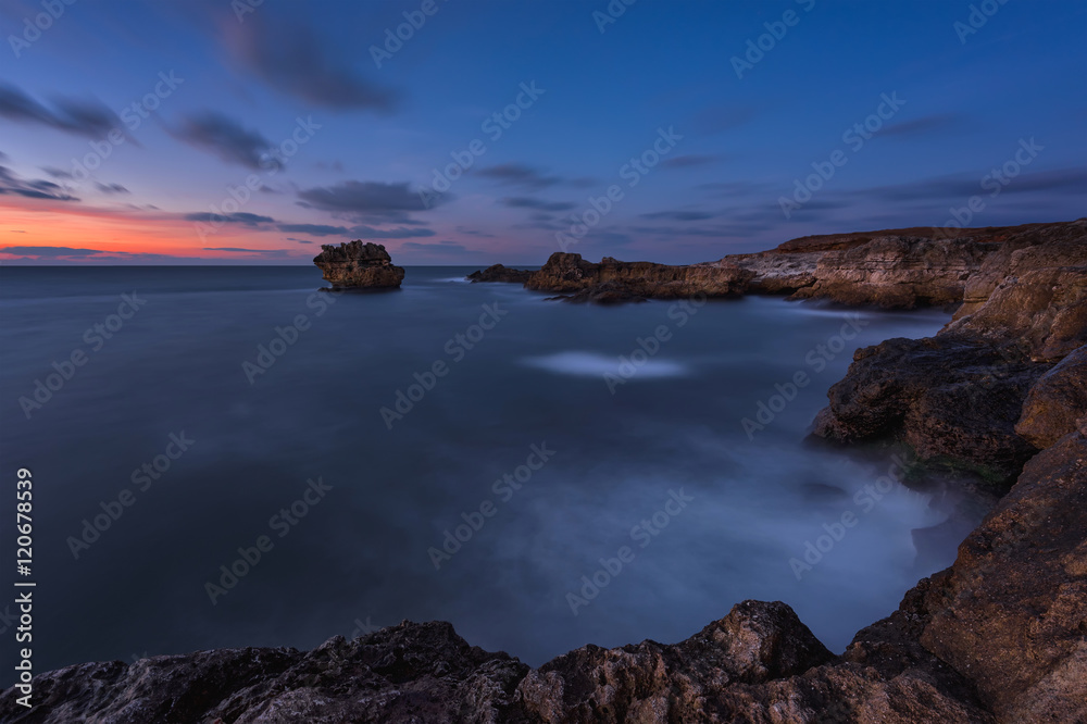 Rocky sunrise / Magnificent sunrise view in the blue hour at the Black sea coast, Bulgaria