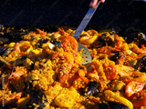 Traditional Spanish Seafood Paella with Shrimp, Mussels, and Saffron Rice