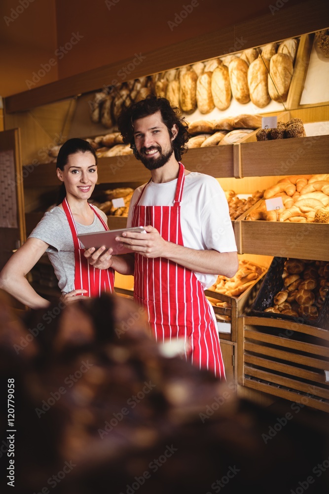 Couple using digital tablet