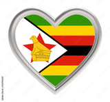 Zimbabwe flag in silver heart isolated on white background. 3D illustration.