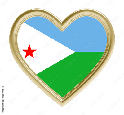 Djibouti flag in golden heart isolated on white background. 3D illustration.