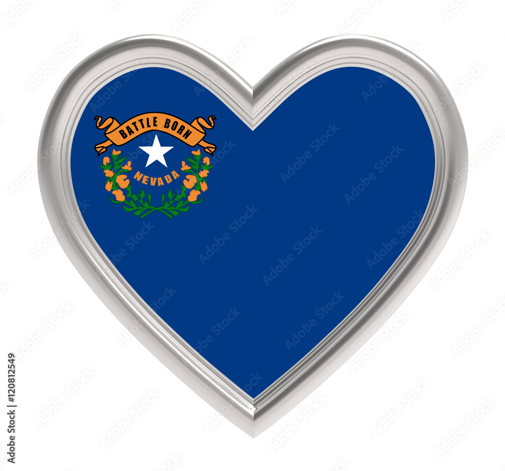 Nevada flag in silver heart isolated on white background. 3D illustration.