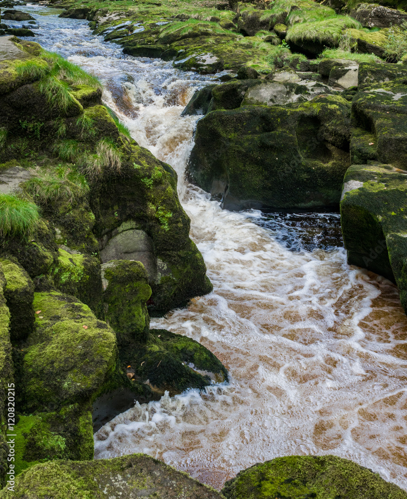 The famous Strid waterfall caused by the narrow gorge of the river Wharfe at Bolton Abbey estate, shipton, yorkshire, UK