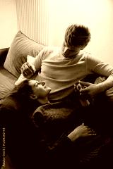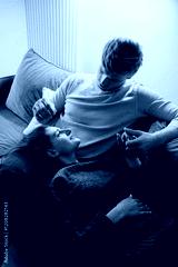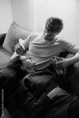 A young couple relaxing together on a couch, showing love and affection. The casual indoor setting conveys comfort and intimacy, highlighting the importance of connection and warmth in relationships.