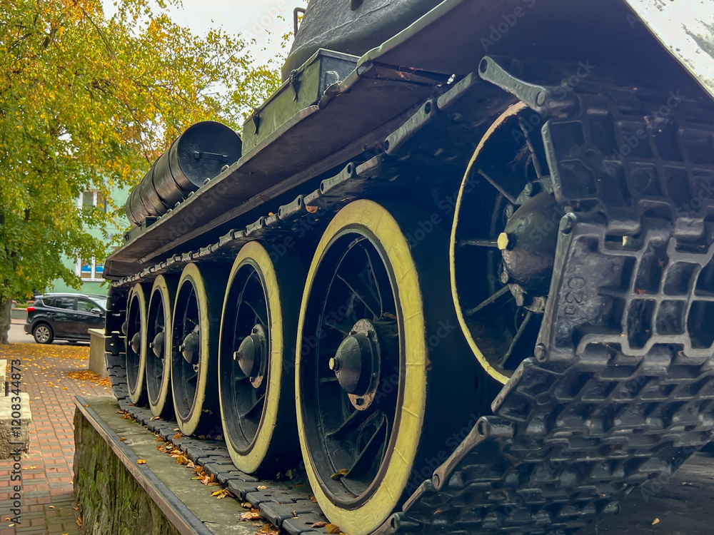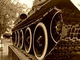 A Soviet T-34/85 tank from World War II as a monument in the town of Sawin in eastern Poland. In August 1944, the Dresden Tank Corps was formed in the nearby Sawin forests