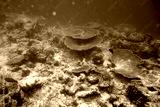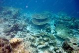 Beautiful large table corals,(Acropora hyacinthus) on the reef in the Maldives.