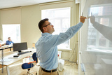 students and teacher writing on school white board