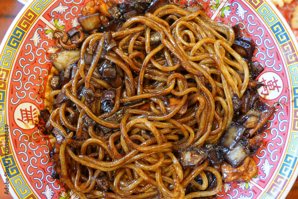 Jjajangmyeon is a Korean-style Chinese noodle dish that is popular in Korea because of its sweet and salty taste