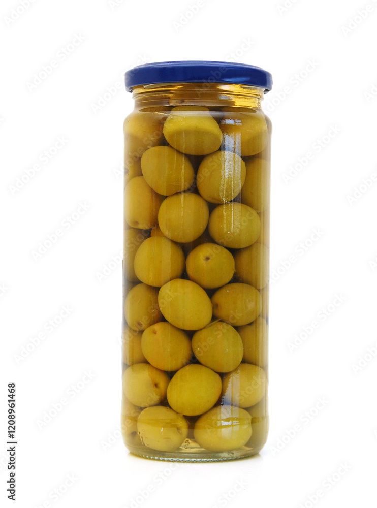 pickled olives on white background