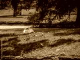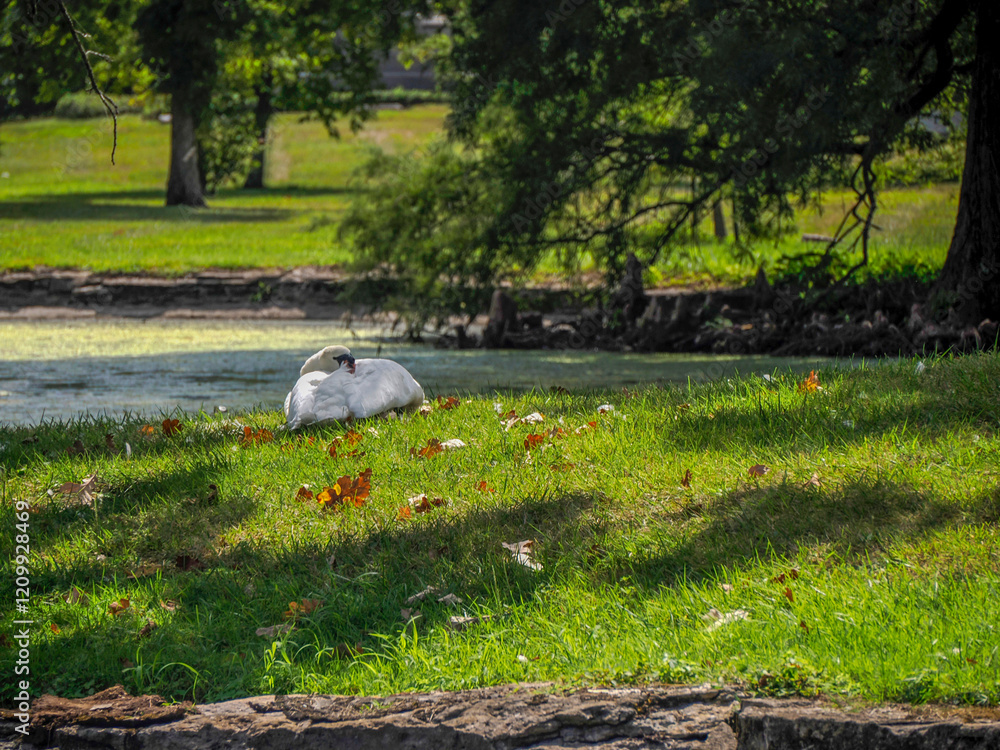 Swan in pond of Cincinnati Finneytown historical cemetery Graveyard