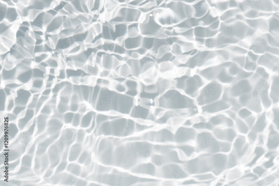White water with ripples on the surface. Defocus blurred transparent white colored clear calm water surface texture with splashes and bubbles. Water waves with shining pattern texture background.