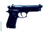 Black semi automatic handgun isolated on white background