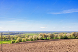 Rural landscape with a view to the horizon over a cultivated land at spring