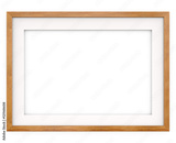 Wooden Frame. Flat Profile. 3D render of Classic Wooden Frame with white Passe-partout. Blank for Copy Space.