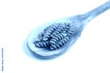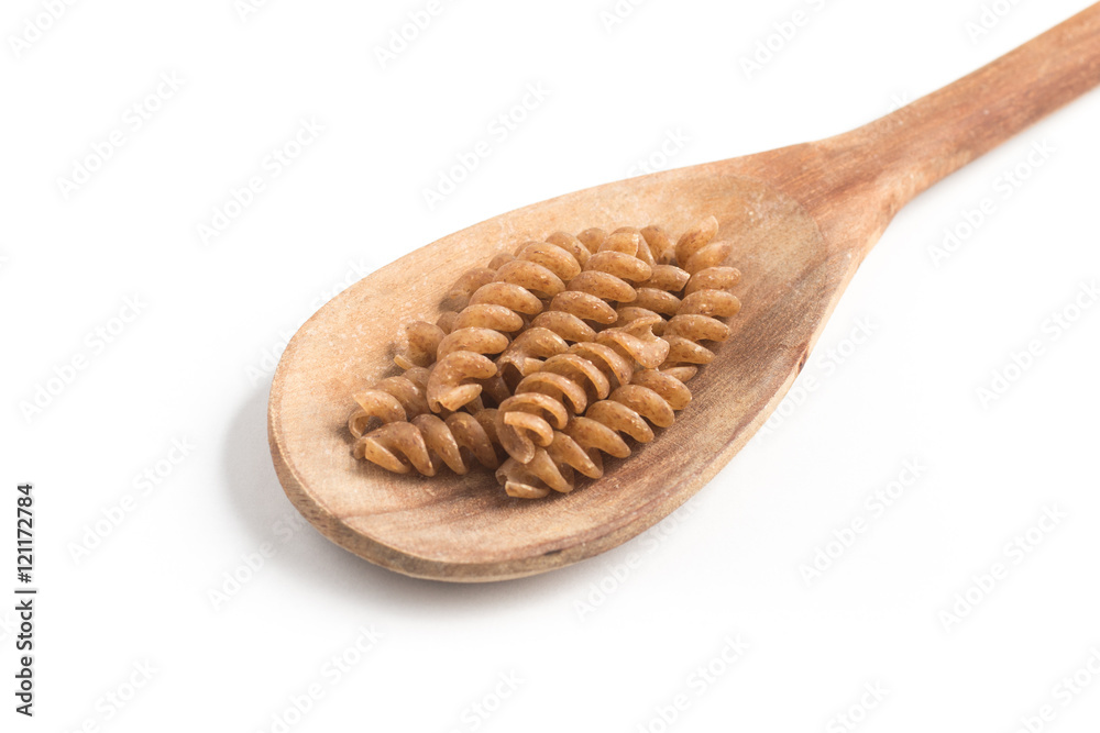 Wholemeal Fusilli into a spoon. Integral Pasta