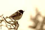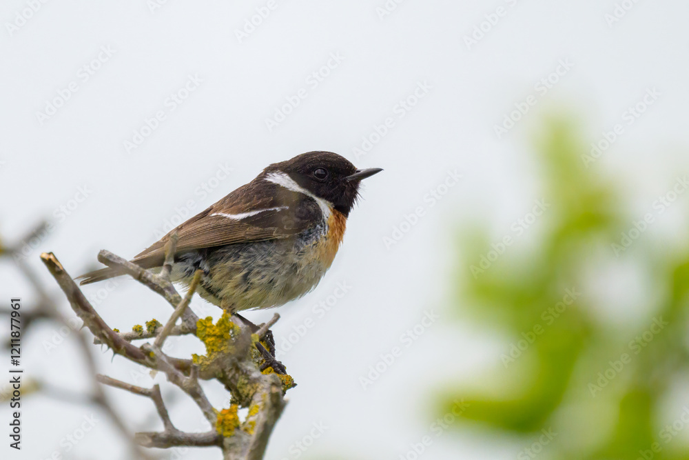 A common stonechat sitting on a small twig