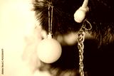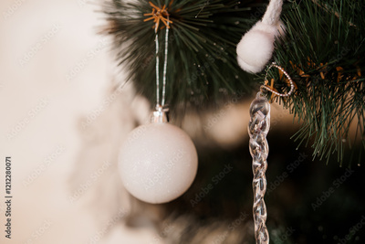 Elegant White Christmas Ornament and Icicle Decoration on Festive Green Tree