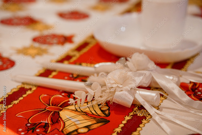 Elegant Christmas Table Setting with Decorative Candles and Floral Accents
