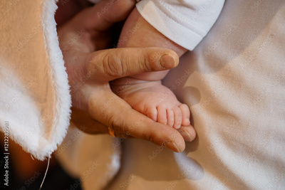 A Tender Moment: An Adult Hand Gently Holding a Baby's Tiny Foot