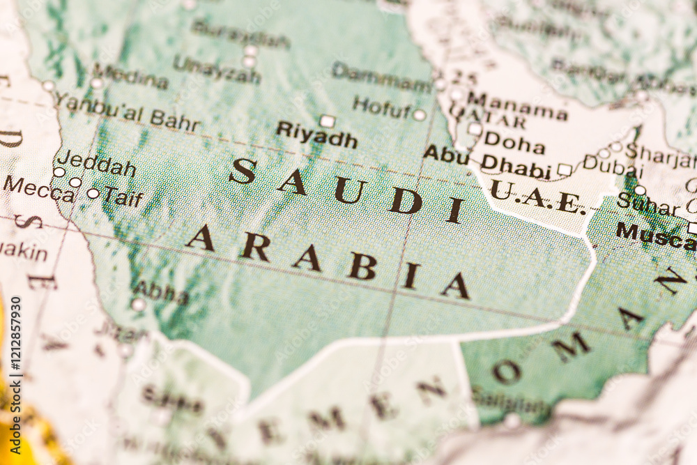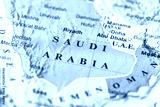 World map. Saudi Arabia on geographical map, world tourism, destination. Political map close-up. Photo.