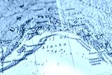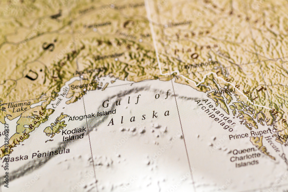 World map.Alaska on the geographical map, world tourism, destination. Political map close-up photo.