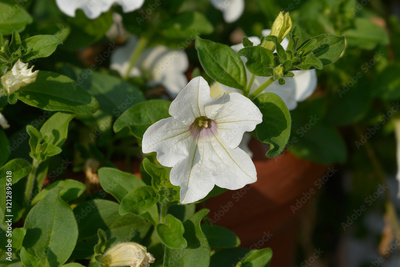 White garden petunia flowers