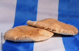 Greek pita bread on the country's flag.Concepts of traditional food in Greece