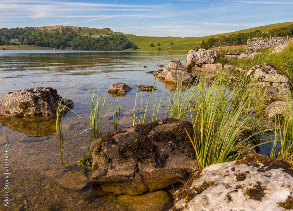 Malham tarn looking beautiuful on a summers evening, Malham, Yorkshire, UK