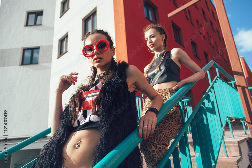 young pretty woman posing in the street