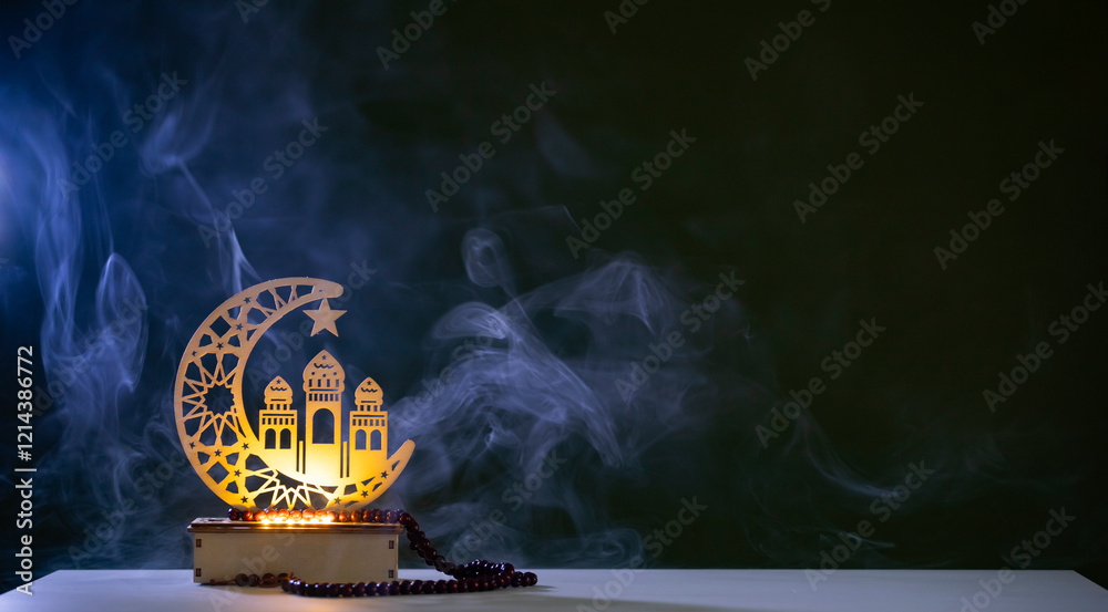 Festive greeting card for Muslim holy month Ramadan Kareem.