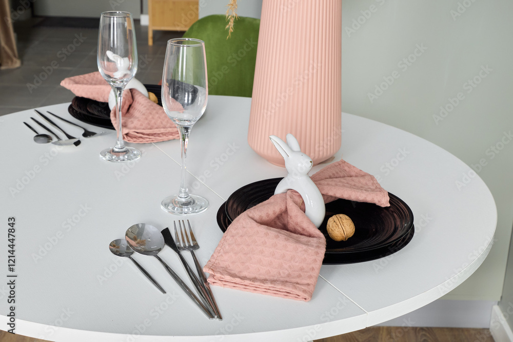 An Elegant Table Setting featuring Modern Decor that embraces a delightful Spring Theme