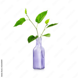 Vase with green leaves