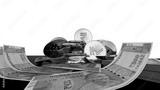 Golden Indian rupee sign and Indian currency coin isolated on 3d render. bearish and bullish golden arrow stock market background.