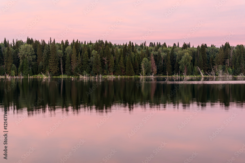lake sunset pink clouds sky