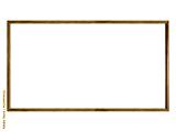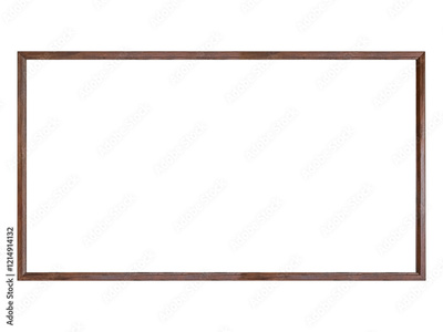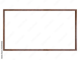 Dark brown wooden 16 to 9 aspect ratio frame is isolated on white background.