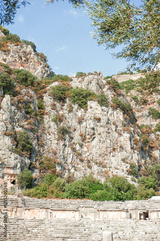 The ancient steps of Greek amphitheater at the ancient City in Antalya Province, Turkey