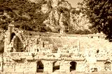 The ancient steps of Greek amphitheater at the ancient City in Antalya Province, Turkey