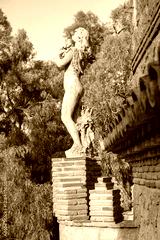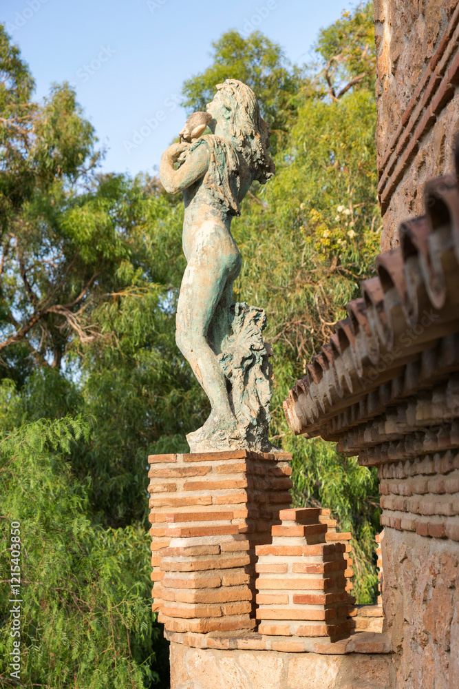 Closeup of a woman statue located in the Colomares Castle. It is a monument dedicated to Christopher Columbus and is located near Benalmádena, Andalusia, in Spain.