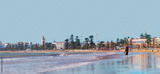 Young blonde woman in black dress walking barefoot on the beach - Essaouira, Morocco