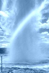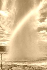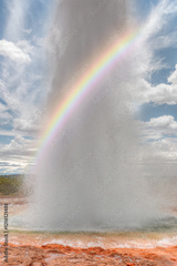 Eruption of Strokkur Geyser with rainbow in Iceland– Haukadalur Valley Iceland