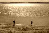 two fishing people beach