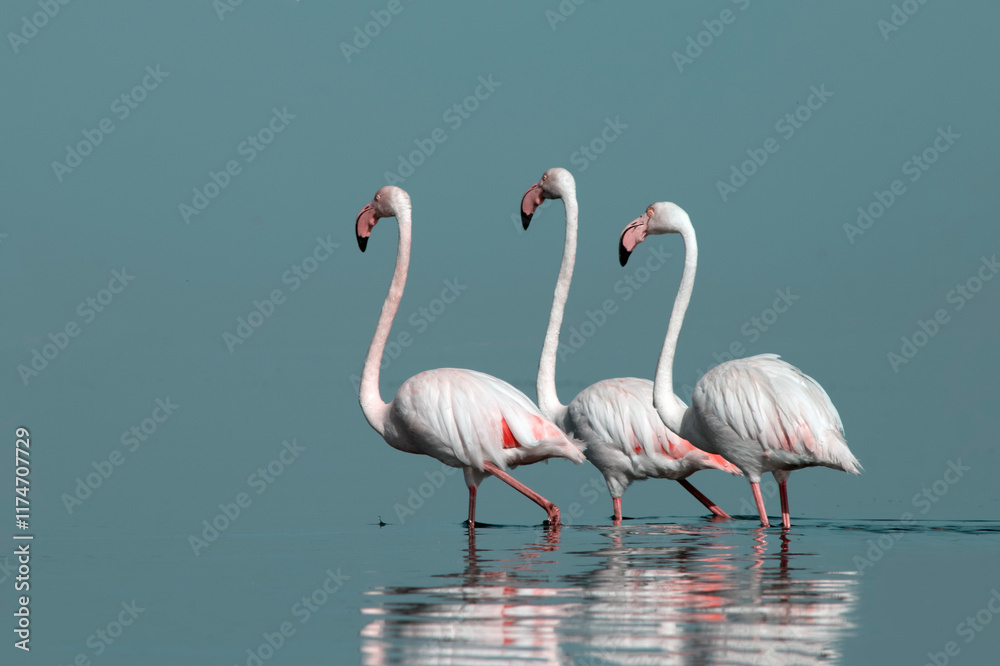 African wild birds. A lone white pelican on a blue lagoon on a sunny day