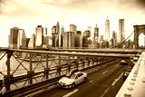 taxi crossing brooklyn bridge