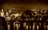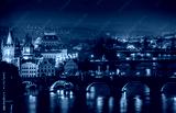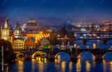 Evening over river Vltava near Charles bridge in Prague