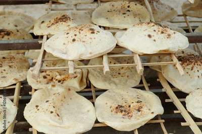 freshly baked Arabic bread. bakery in Egypt.photo toned