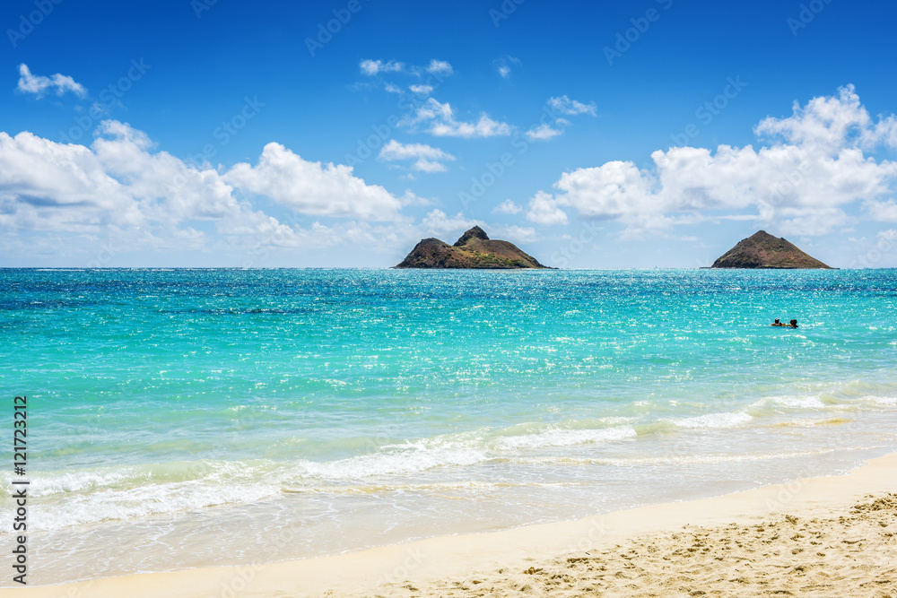 Mokulua Islands as seen from Lanikai Beach in Oahu, Hawaii